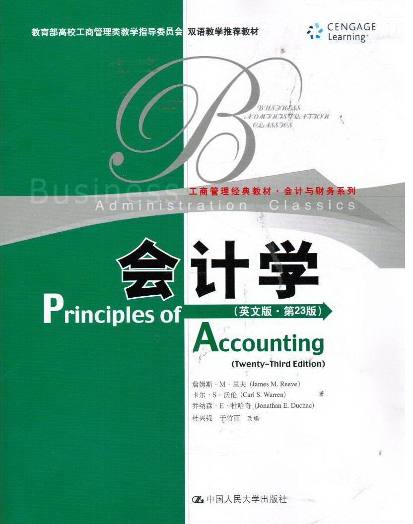 В процессе адаптации я“Возьмите свою сущность”Принцип удаления нынешней реальной ситуации, которая далека от нынешней реальной ситуации на рынке китайского капитала, и часто не связан с или редко связан с учебным преподаванием.Например, глава 12, глава 18-26, Приложение B to D и Index.Чтобы лучше адаптироваться к требованиям для установки двуязычного обучения в внутренних колледжах и университетах, резюме и упражнения и большинство приложений после каждой главы были удалены."Бухгалтерский учет (английская версия·«23 -й)» также переведен профессором Дю Синьчяном, и китайская версия перевода также будет опубликована Ренминским университетом Китая Пресс.