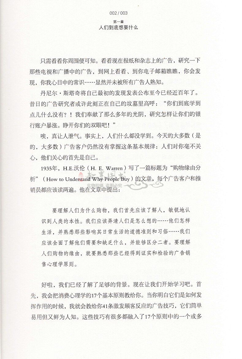 Чтобы понять, почему люди совершают покупки, мы должны сначала понять людей и признавать природу людей.Мы должны выяснить, что думают люди…&Hellip; как они живут, и знакомы с теми моральными нормами и обычаями, которые влияют на их повседневную жизнь…&Hellip;Чтобы понять причину покупок людей, мы должны быть знакомы с принципами психологии продаж рекламы, которые были подтверждены и проверены.