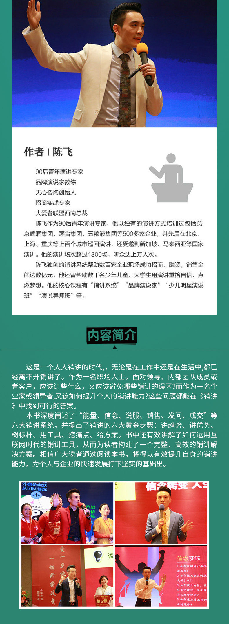 Первоначальная система продаж и лекций Чэнь Фей помогла сотням компаний успешно набирать и собрать средства на месте, с продажами сотен миллионов юаней;Его основные курсы включают“Система продаж”“Спикер бренда”“Детский речевой класс знаменитостей”“Речевой инструктор класс”ждать.