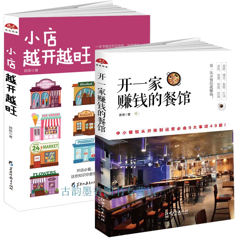 В акциях открывается ресторан Money+Small Shop Yueyue, Вьетнам, 2 тома книг по продажам, книги по управлению маркетингом в ресторане Catering, книги по предпринимательскому управлению.