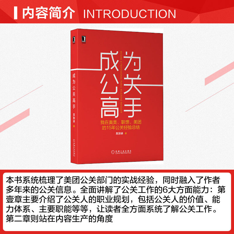 Эта книга систематически разбирает практическое опыт Департамента по связям с общественностью США и в то же время объединяет информацию о связях с общественностью автора на протяжении многих лет.Шесть основных аспектов работы по связям с общественностью были полностью объяснены: глава 1 в основном представляет карьерное планирование людей по связям с общественностью, включая ценность, систему способностей, основные функции людей по связям с общественностью и т. Д., чтобы читатели могли все понять работа.Вторая глава стоит с точки зрения производства контента и вводит широко используемые инструменты в работе по связям с общественностью——Третья глава представляет, как персонал по связям с общественностью установил долгосрочные и стабильные отношения с соответствующими сторонами.Глава 4 посвящена обращению с кризисными связями с общественностью.Это основной приоритет в работе по связям с общественностью, и это также место, которое может отражать важность и ценность работы по связям с общественностью.Пятая глава рассказывает о том, как организовать действия, сосредоточиться на различных типах деятельности и как оптимизировать эффект после события.Глава 6 представьте, как написать и организовать идеальный случай планирования.