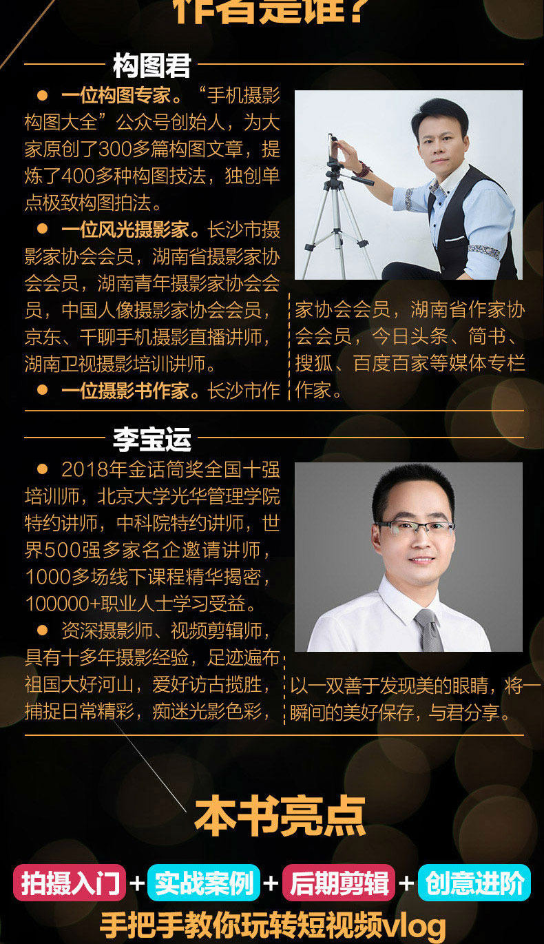 1. Композиция Jun;[Композиция мобильной фотографии Daquan] Основатель общественного аккаунта создал более 300 статей композиции для всех и более 400 методов композиции.Фотограф по декорации.Член Ассоциации фотографов Чанши, член Ассоциации фотографов Хунань, член Ассоциации молодежных фотографов Хунань, члены Ассоциации фотографов Китая, лекторы джингдонга и мобильной фотографии Цяньльяо, обучающий обучающий фотосъемник Хунань.Фотограф -писатель.Член Ассоциации писателей Чанши, член Ассоциации писателей провинции Хунань, JR заголовки, Цзяншу, Соху, Байду Байджия и других обозревателей СМИ.