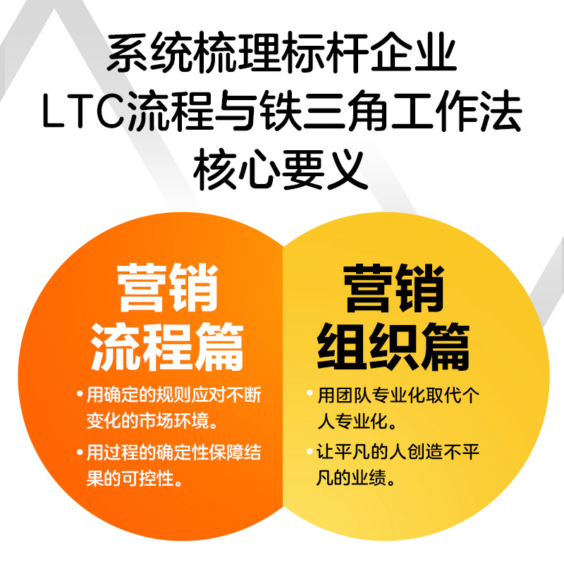 «LTC и железный треугольник: от потенциальных клиентов к сбору денежных средств» знакомит с процессом LTC Huawei и организацией «железного треугольника» с двух сторон: маркетингового процесса и маркетинговой организации. Посредством исследований процесса разработки системы маркетинга и методов управления маркетингом эталонных компаний он предоставляет идеи, методы и инструменты, которые можно использовать в качестве справочных материалов, помогая компаниям обслуживать клиентов, продолжать глубоко понимать клиентов, а также быть близкими друзьями и сочувствующими клиентам.