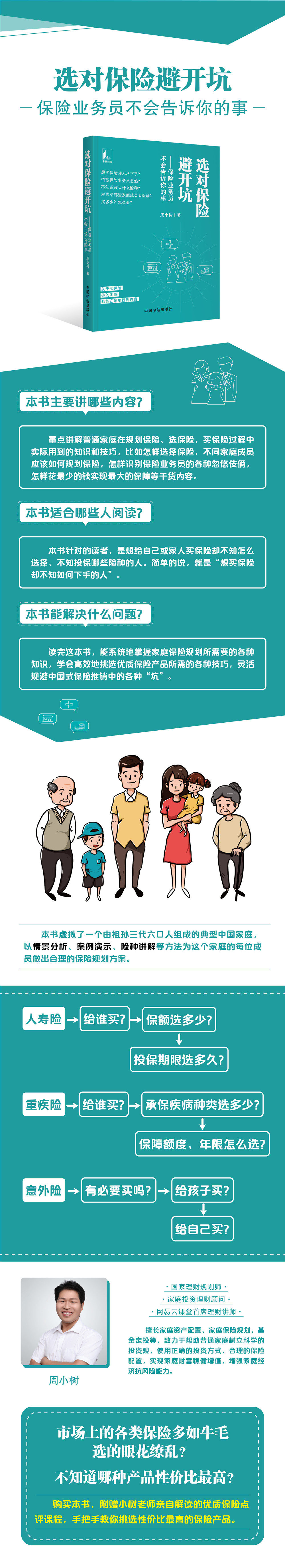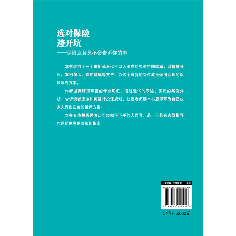 Эта книга практически типичная китайская семья, состоящая из трех поколений предков и внуков. Она использует анализ сценариев, демонстрацию случаев, страховое объяснение и другие методы для составления разумного страхового плана для каждого члена семьи.