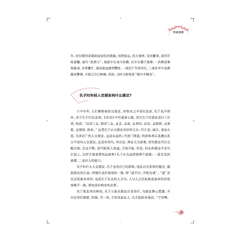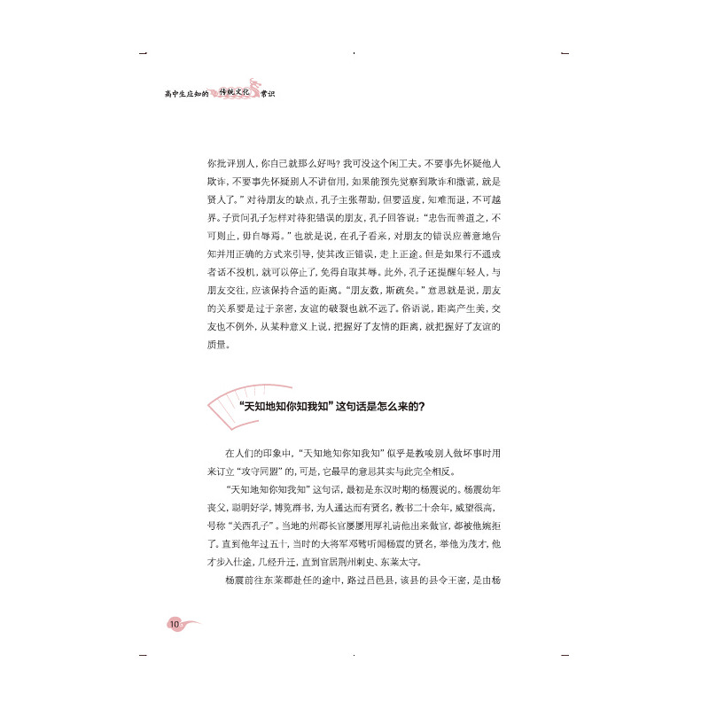 Выбор субъекта этой книги, разделение главы, сложность знаний, длина текста, стиль языка и даже дизайн украшения сделал уникальный дизайн, который адаптируется к разделу средней школы.Вся книга принимает форму вопросов и ответов, начиная с общих традиционных культурных вопросов в жизни, на ярком и живом языке, краткого и точного объяснения традиционных культурных знаний, содержащихся в нем.Каждая длина короткая, основное внимание ясно, целевой целевой сильень, понимает Сяочанг и адаптируется к привычкам чтения и интересам чтения молодых читателей.