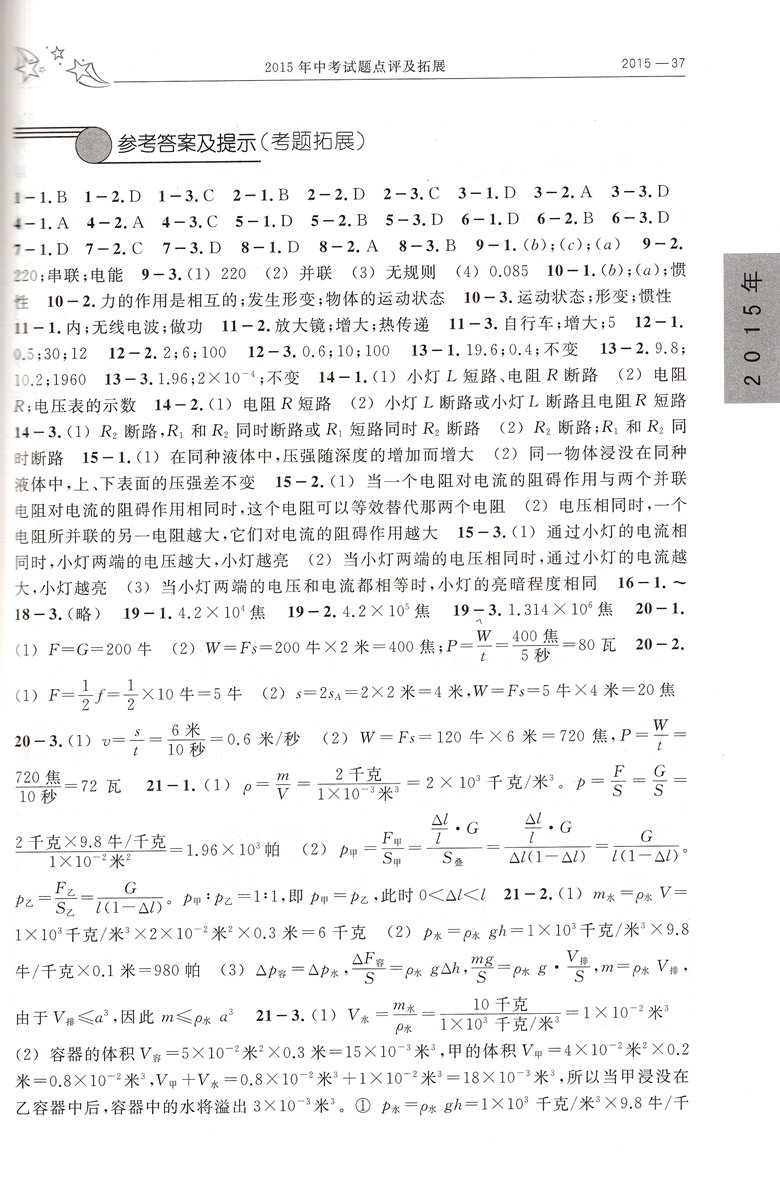 2015-2019 Пятилетний промежуточный экзамен Вопросы перспективы Физика Шанхай Том Шанхай Том Шанхайский вступительный экзамен в средней школе Физические истинные вопросы