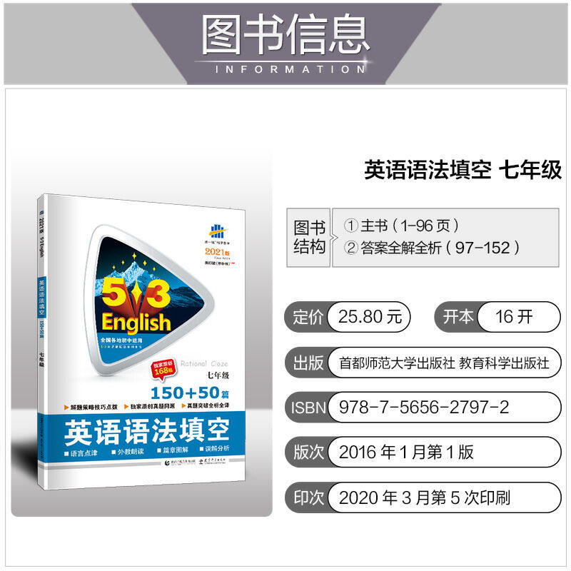 曲一线 Английская и английская грамматика в вступительном экзамене средней школы 150+50 седьмых классов 73 английских книг серии «Новые вопросы» (2021)