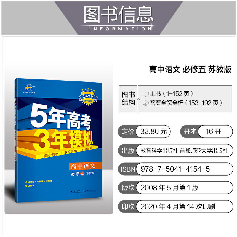 曲一线 Средняя школа Китайская обязательная 5 -советское издание 2021 года Синхроновое 5 -летнее вступительное экзамен 3 -летнего моделирования пять три