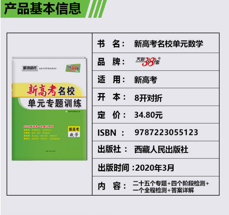 天利38套 Новые подразделения для вступительных экзаменов в колледже Специальная подготовка Математика Открыла вступительный экзамен в колледже подходит для первого раунда нового вступительного экзамена в колледже 2021 года.