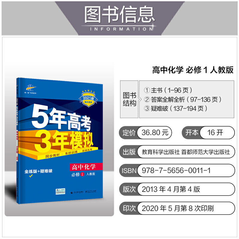 曲一线 Обязательный курс химии для старших классов 1. Версия People's Education Edition 2021. Синхронизированный курс средней школы. Пятилетний вступительный экзамен в колледж. Трехлетняя симуляция. 3 мая.