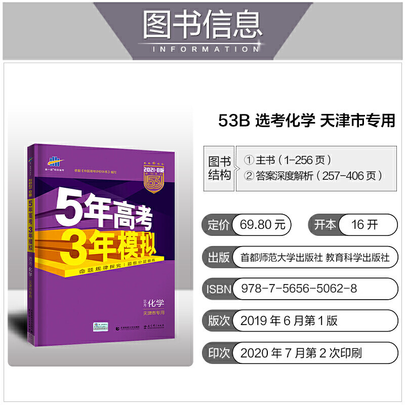 曲一线 2021b издания отбора химии Пяти -летний вступительный экзамен в колледже Трехлетняя моделирование дедукции Тяньцзинь в Тяньцзине на основе «Система оценки вступительных экзаменов в Кита