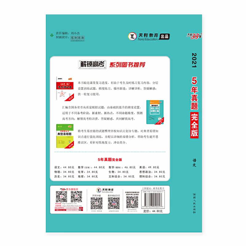 Tianli 38 разблокировать вступительный экзамен в колледже 2016-2020 Пятилетний истинный вопрос полное издание-китайское язык