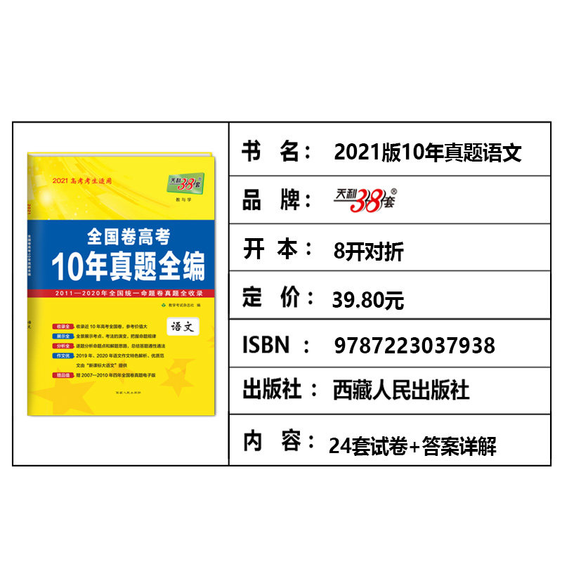 天利38套 2021 г. Вступительный экзамен в колледже 10 лет Истинные вопросы, полные китайского тома 2011-2020
