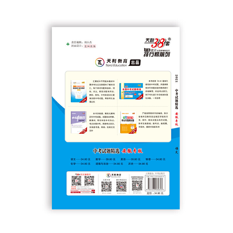 Tianli 38 наборов 2021 г. Средний экзамено. Выбранные · Anhui Special Edition 2021 Вступительный экзамен средней школы применимо