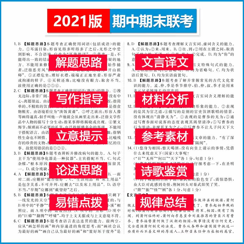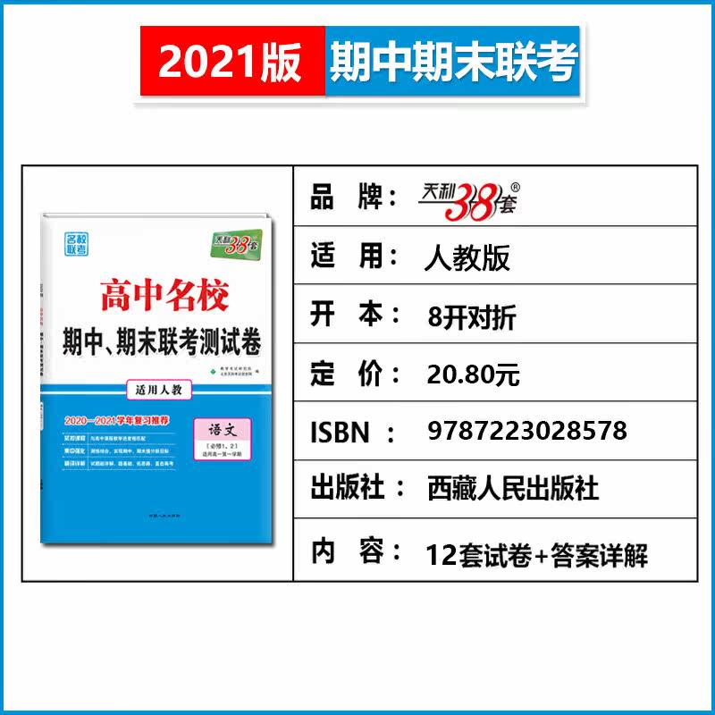 Tianli 38 Sets, первый год средней школы, китайский (народные образовательные обязательства 1, 2) 2021 Среднесуточные и окончательные экзаменные испытания для знаменитых средних школ