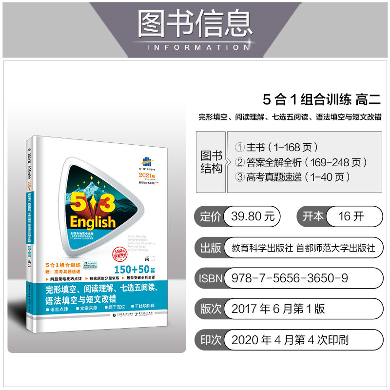 曲一线 Официальное подлинное издание 2021 года 53 Английский 5 -1 -1 заполнение записи чтения, семь выборов пять выборов скорости чтения и неожиданные.
