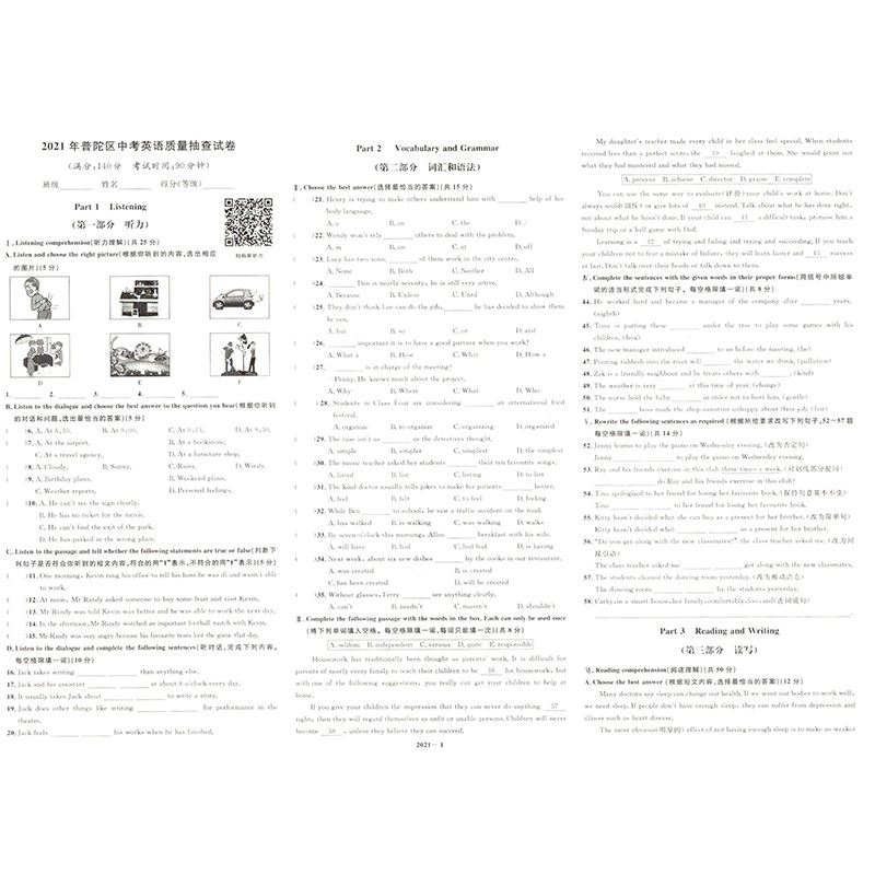 На пути к престижной школе 2017-2021 гг. Версия вступительного экзамена в средней школе в Шанхайском