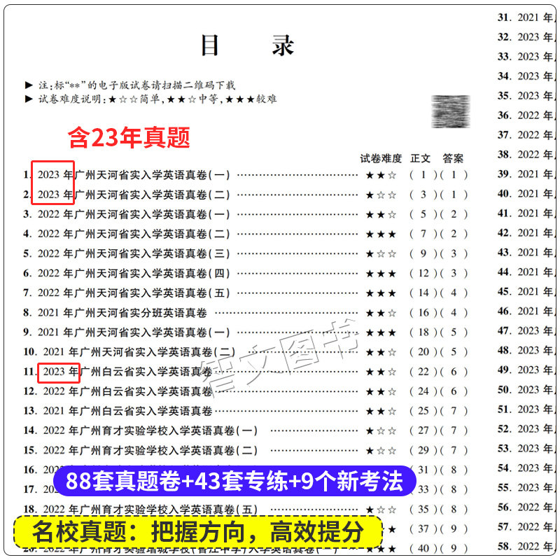 В 2024 году в десятке знаменитой школы Гуандунга, Xiaoshengchu True Volume 88, 88 наборов поступлений и тестовых документов подробно.