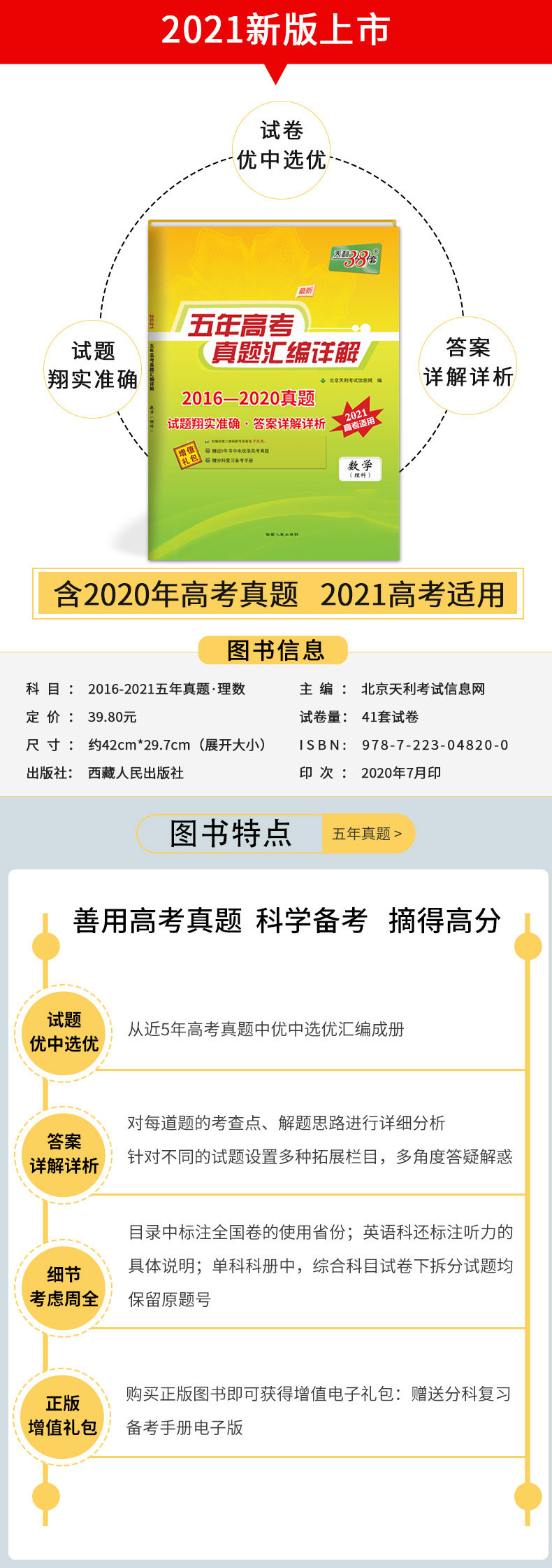 [National Edition] 2021 Tianli 38 наборов 2016-2020 годов Пятилетний вступительный экзамен в колледже True True True True True True True True True True True True Exection