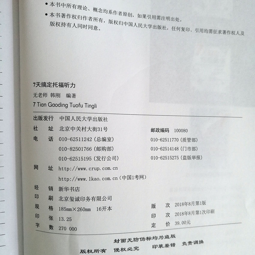[Новая книга место] Нет учителя за 7 дней, чтобы исправить Toefl прослушивание TOEF TOEF