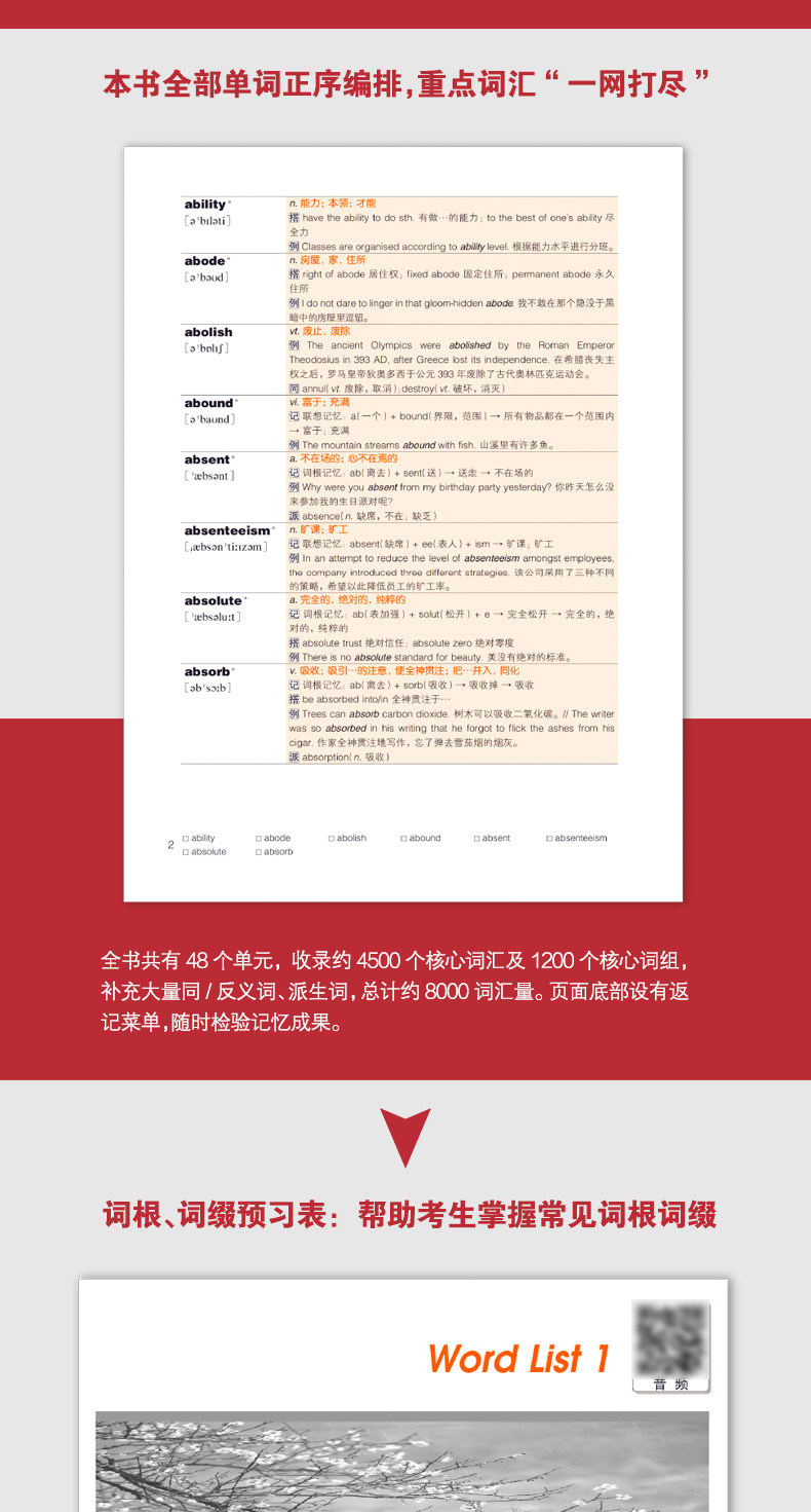"IELTS CORCAULARY ROOT+MEMPER MEMORD LENOVO: Enhanced Edition" продолжается&Ldquo; резиновая книга&Rdquo; серийные характеристики, всесторонне идентифицируют основной словарный запас теста IELTS, тщательно выберите слово интерпретацию слова, усыновите“+l+lenovo&Rdquo; Метод памяти, дополненный различными методами памяти, такими как комбинированные слова, слов, разделенные, гомофонические и оснащенные большим количеством юмористических иллюстраций, чтобы помочь кандидатам избавиться от мертвых воспоминаний, расслабиться и запоминать слова.Книга суммирует богатый/антоним и полученные слова и отмечена*прослушиванием и устным словарным запасом, чтобы всесторонне расширить словарный запас кандидатов. Память.Эта книга оснащена MP3 Audio, которая читается вслух и интерпретация профессионалами. Сканируйте заднюю обложку или QR -код в тексте, чтобы прослушать и загружать аудиофайлы.