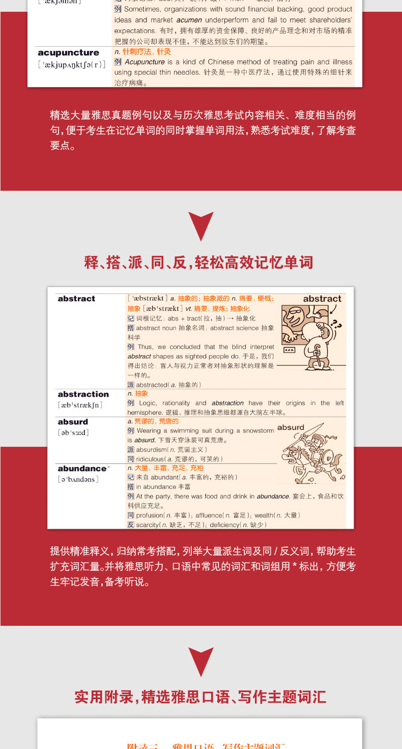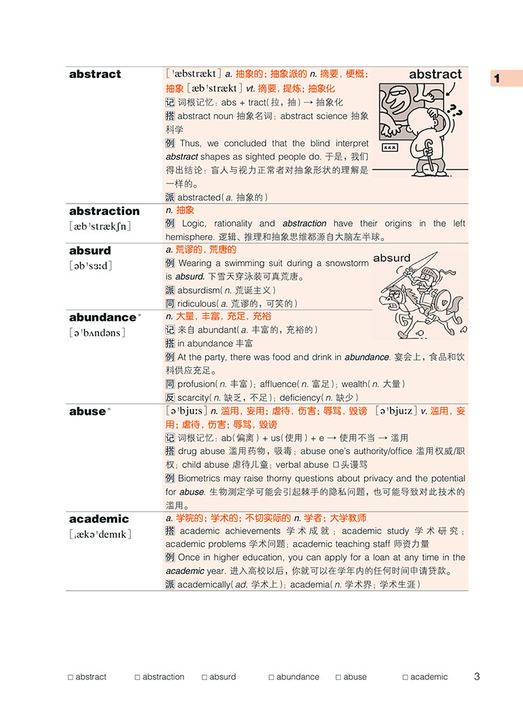 В дополнение к методу текстовой помощи, эта книга представляет собой слово с*350 и интересными иллюстрациями, чтобы создать расслабленную среду памяти для кандидатов.“ не может достичь картины тысяч слов&Rdquo; юмористическая иллюстрация может эффективно облегчить нервы усталости кандидатов и углубить память о словах.