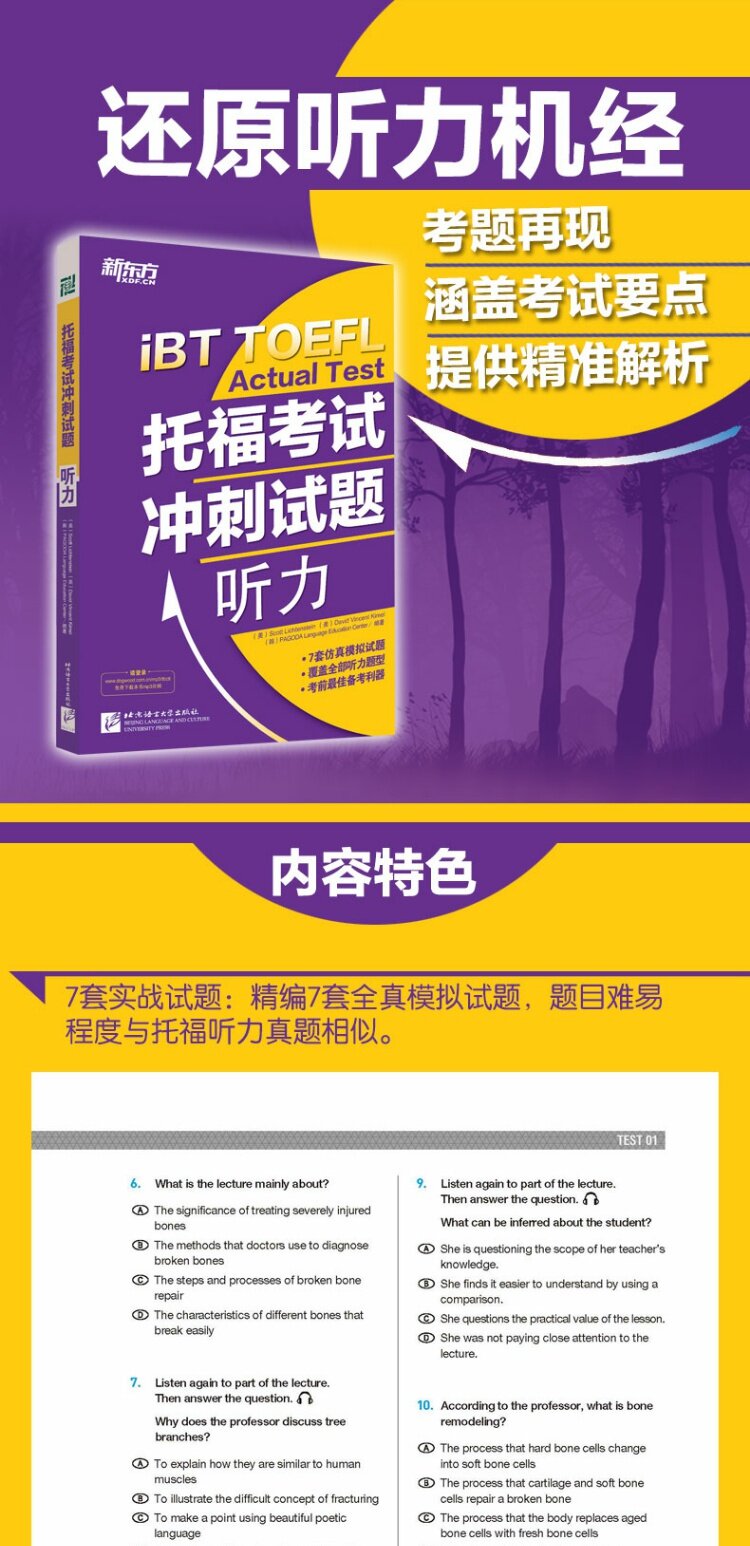 [Новый восточный официальный флагманский магазин] Toefl Toefl Test Test Sprint Вопросы: прослушивание (с помощью MP3 Audio) Рестактирование микрометра Воспроизведение, охватывающее все экзамены