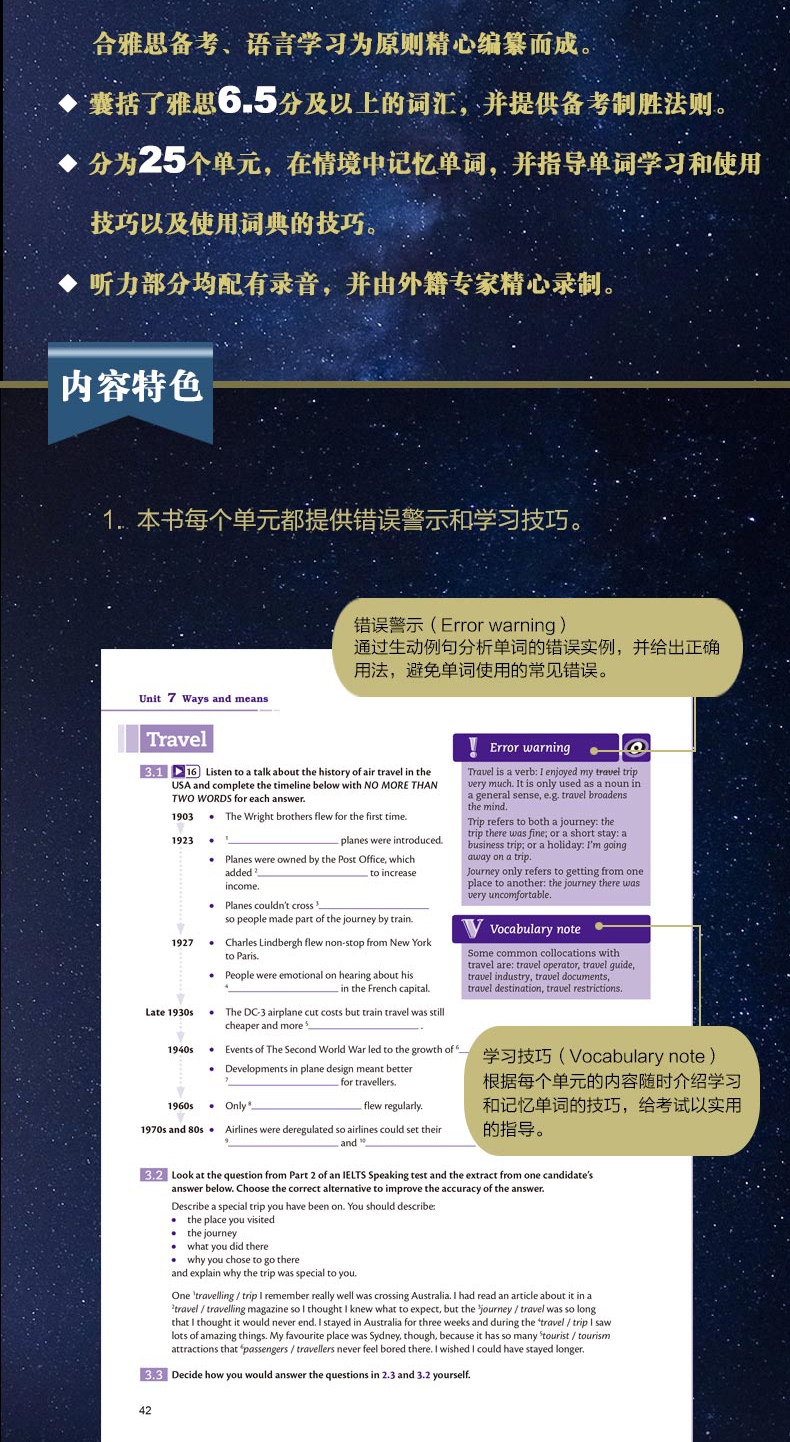 Предупреждение об ошибках: экземпляр ошибки слов с помощью ярких примеров предложений и дается правильное использование, чтобы помочь кандидатам избежать общих ошибок при использовании слов;