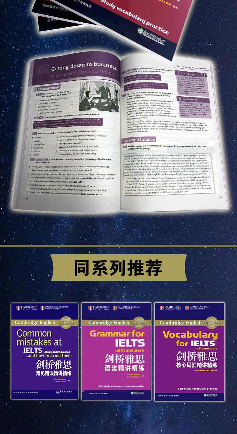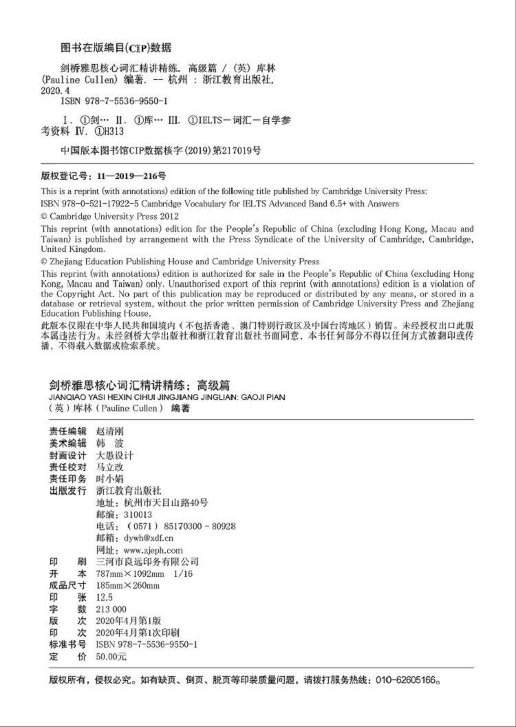 Эта книга относится к правам*Информации в Кембриджском международном корпусе Corgage и Cambridge учащихся, которые тщательно скомпилированы на основе принципов подготовки IELTS и языка обучения.Корпус, основанный на этой книге, специально включает в себя большое количество тестовых документов кандидатов, поэтому он может гарантировать, что кандидаты используют словарный запас в реальном контексте.Эта книга дает навыки решения проблем IELTS и много упражнений, охватывающих IELTS 6,5 очков и выше.Кроме того, в этой книге также перечислены типичные примеры ошибок, чтобы помочь кандидатам избежать ошибок.