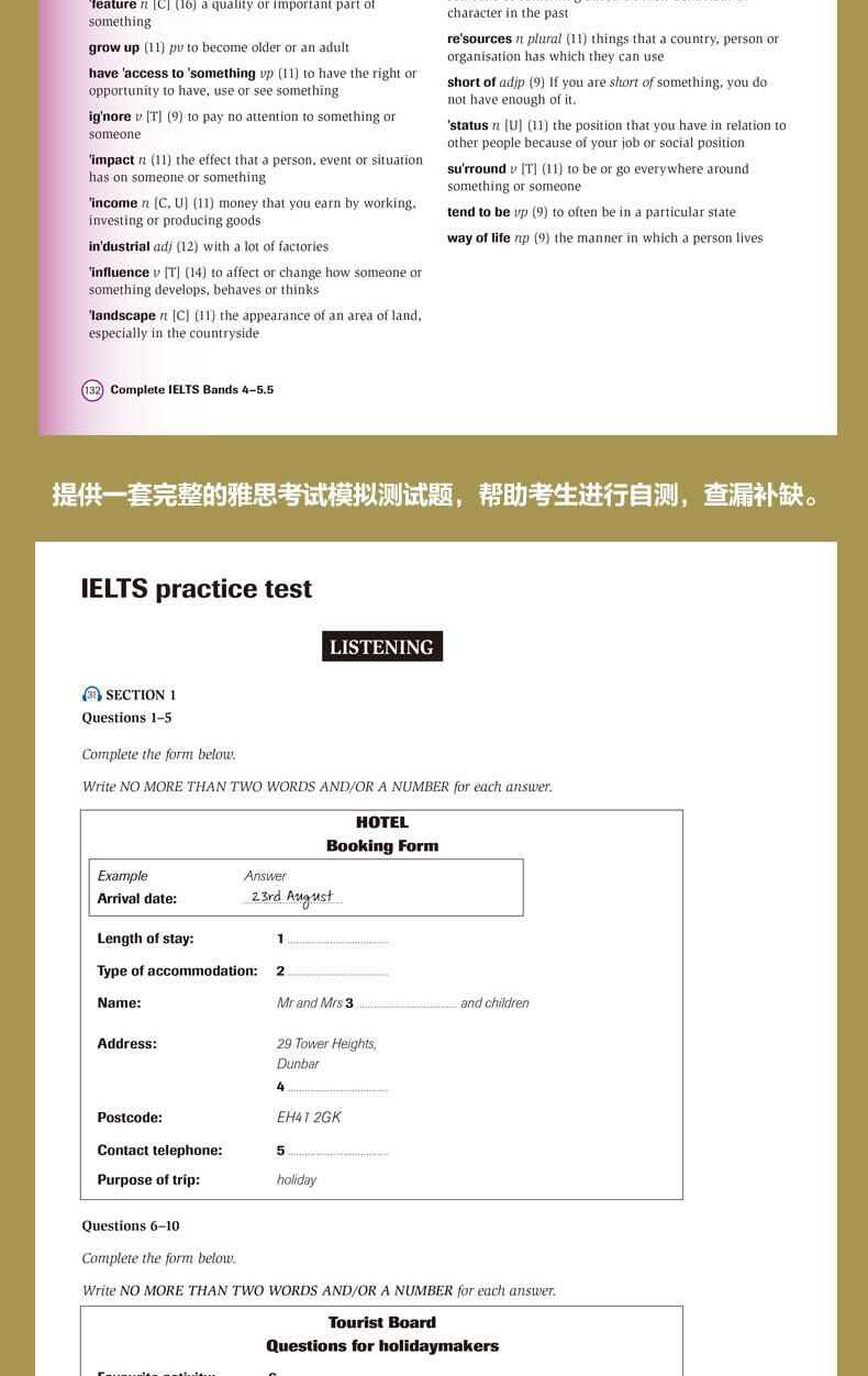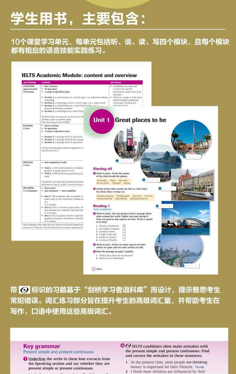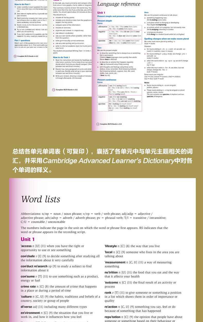 «Cambridge IELTS Primary Rutorial» содержит книги студентов, упражнения и DVD -диск, и предназначен для студентов, которые хотят пройти академические тесты IELTS.Благодаря изучению этого урока кандидаты полностью овладеть четырьмя аспектами слушания, выступления, чтения и написания, необходимых для теста IELTS.Книга охватывает анализ и практику всех тестовых вопросов, ключевой грамматики и словарного запаса, и эти грамматики и словаря проходят через“Кембридж Учащийся Корпус”Исследование и исследования пришли к выводу, что кандидаты, которые хотят получить высокие оценки на экзамене, очень полезны.В дополнение к предоставлению всех аудио и разговорных частей учебных и практических альбомов, интерактивное программное обеспечение также предоставляет дополнительные упражнения для каждого подразделения.