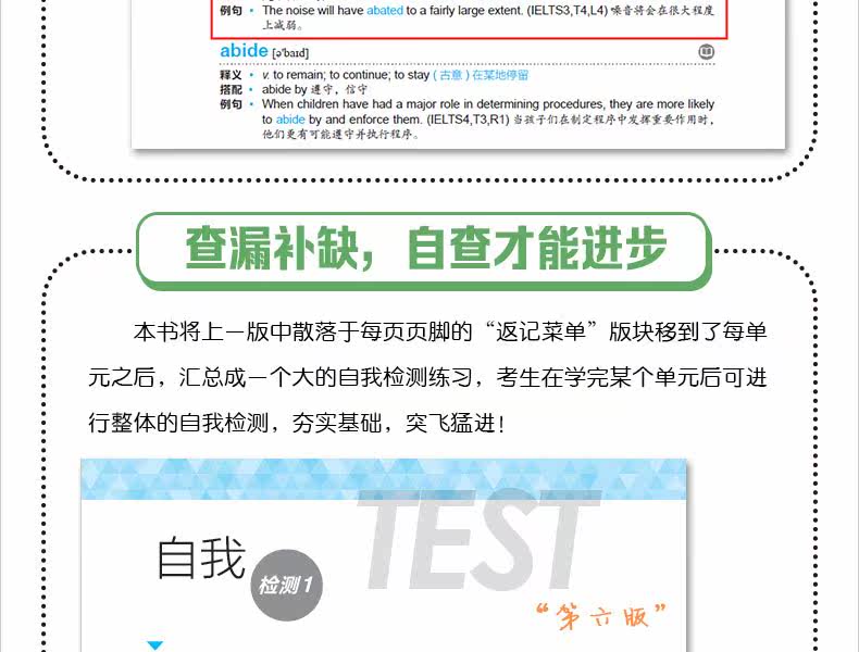 Он постоянно обновляется в течение 8 лет. Он выбирает словарный запас из реальных вопросов теста и ранжирует частоту слов. По сравнению с 5-м изданием добавлено 12 мечей.&-Jian 13 реальных тестовых словарных запасов, упрощенные определения словарных запасов, упрощенные примеры предложений, новая аудиозапись на английском языке в формате MP3.