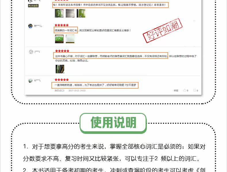 Основные статьи, собранные в этой книге, классифицированы в соответствии с частотой слов и разделены на шесть категорий: высокочастотные слова (встречающиеся 6 раз и более), 5-частотные слова, 4-частотные слова, 3-частотные слова, 2-частотные слова и 1-частотные слова. Кандидаты могут выборочно их запомнить.Кандидатам, желающим получить высокие баллы, необходимо овладеть всей основной лексикой; Если требования к баллам не высоки и время повторения ограничено, вы можете сосредоточиться на словарном запасе с частотой 2 или выше, чтобы максимально использовать ограниченное время и достичь наиболее удовлетворительных результатов.Кроме того, в этой книге также есть четкие аннотации по частоте слов для одних и тех же корневых слов основных статей.