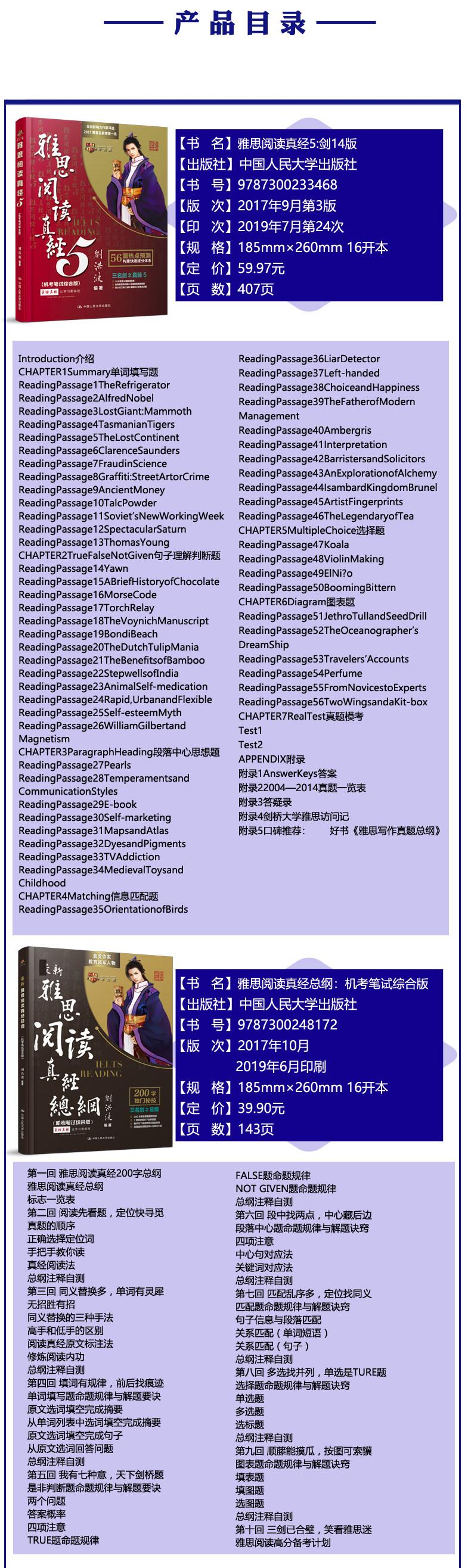Версия этой книги основана на динамике теста IELTS, объединяет информацию, полученную на компьютере, и охватывает реальные вопросы теста.Книга «IELTS Reading Bible 5 (компьютерная версия письменного теста)» включает в себя 7 глав и 5 приложений. Оригинальный текст в книге точно такой же, как и настоящий тест IELTS.Объем оригинального текста охватывает весь банк тестов по чтению за последние годы. Исходя из этого, он разделен на 7 типов вопросов для эффективного обучения.Изучив эти 7 типов вопросов, вы сможете ознакомиться с характеристиками типов вопросов, подтвердить методы решения вопросов, описанные в «Руководстве по чтению IELTS», и освоить“Тестовая точка”, Чтобы достичь учебных целей, которые знакомы с фундаментом и навыками одновременно, материал и тестовые сайты синхронизируются.Каждая статья в книге принимает различные методы набора набора и стремится в соответствии с моделью презентации реальных IELT.