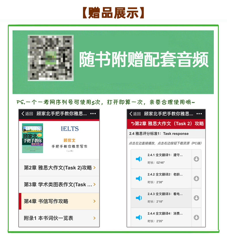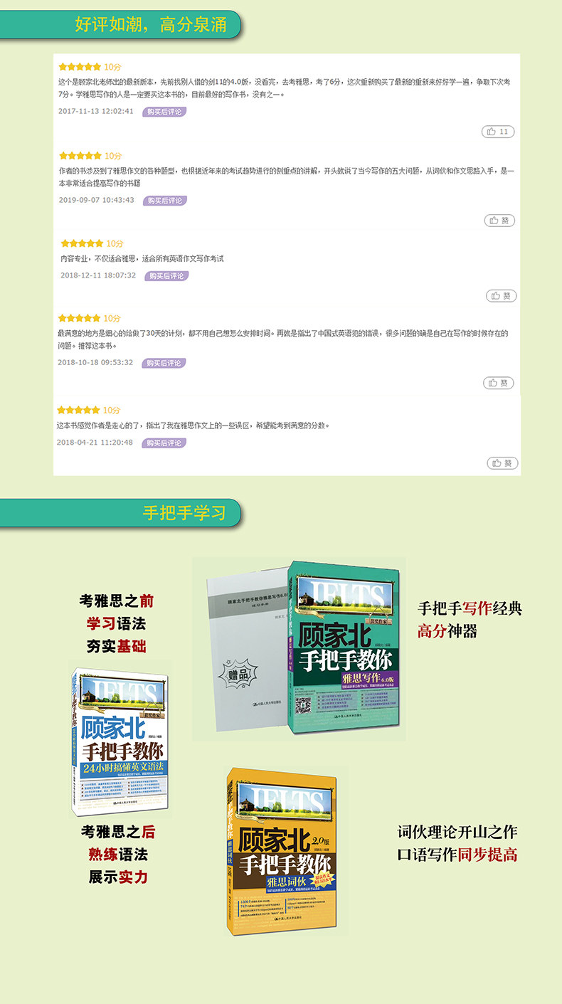 "" "" "Гу Цзябеи обращается с твоей рукой, чтобы научить тебя писать IELTSВерсия 6.0"Это переоборудование ручков ручки Gujiabei. 18 общих моделей предложения,Помогите студентам, у которых плохие фонды выполнять упражнения по переводу и выполнять предложения, в предложениях,И практиковать перевод вокруг этих предложений;два Перевод большой работы обеспечивает синонимы;три  Перевод дает двойные ответы на то, чтобы кандидаты поняли суть перевода; четыре Эссе с высокой оценкой каждой темы написано в соответствии с вашей собственной тестовой комнатой.;пять ПриглашениеЯ пригласил двух экзаменаторов (одного в материковом Китае, один в Новой Зеландии) набрать Fanwen и дать соответствующие комментарии, чтобы сделать качество фанатов более заслуживающим доверияСущностьшесть Добавлены упражнения по переводу и очерки блок -схемы и картПодожди.