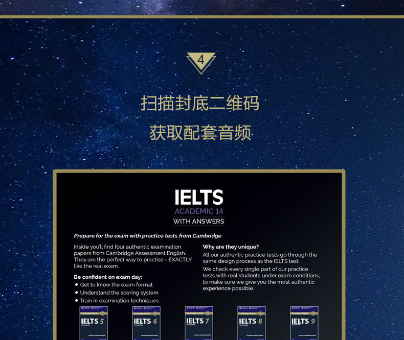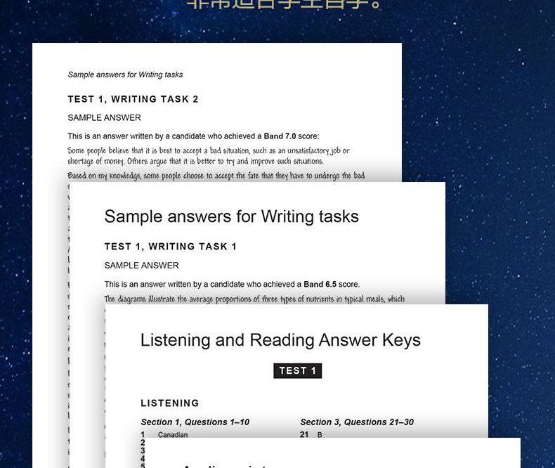 При подготовке к любому экзамену, ключ - изучить реальные вопросы: только понимая, что тестировать, вы знаете, как подготовиться.Официальная коллекция тестов IELTS производится в сфере теста IELTS и является официальным материалом для подготовки к IELTS со значительным эталонным значением.Книга содержит 4 полных набора академических вопросов в полном сроке жизни IELTS и предоставляет упражнения и текст записи прослушивания. В разделе письма представлены эссе для кандидатов и отзывов от экзаменаторов, что очень подходит для кандидатов для изучения самостоятельно.Кроме того, книга также содержит всеобъемлющее введение в различные типы вопросов, анализ системы оценки, принятой Экзаменационным комитетом Кембриджского университета, и записывающие материалы для прослушивания, доступные для загрузки.Все материалы в этой книге предоставляются Департаментом экзаменационных экзаменов на иностранном языке Комитета по экзаменам в Кембриджском университете и являются незаменимым справочником для академических кандидатов IELTS для подготовки к экзамену.