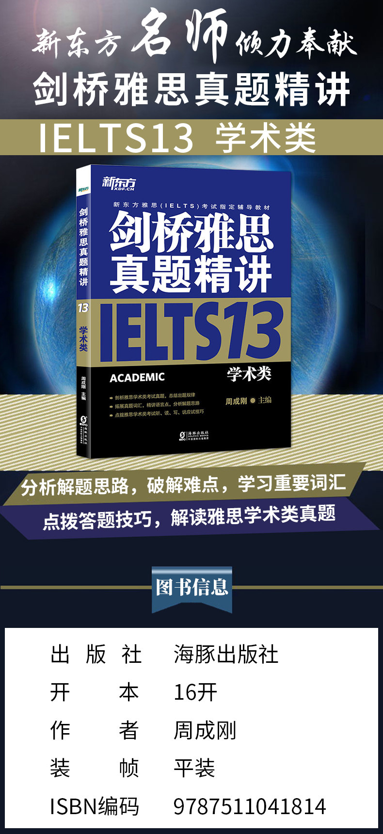 «Cambridge IELTS True Specification 13: Academic Category» объединяет многолетние многолетние опыт работы в команде Oriental IELTS и многие эксперты по преподаванию IELTS.Эта книга проводит подробный анализ и объяснение четырех наборов академических тем IELTS в характеристиках и потребностях китайских академических кандидатов IELTS в «Кембриджском официальном истинном вопросах 13: академическая категория».Кроме того, в разделе «Прослушивание и чтение» представлен богатый словарный запас сцены с реальным вопросом и благодарственное оценивание;“Кандидат состав”и“Обзор эксперта”Рафинированный перевод Que и набрать идеи написания подробно;Эта книга сочетает в себе проблемы с академическим тестированием IELTS с изучением языка, чтобы помочь кандидатам всесторонне улучшить подготовку тестов и языковые навыки.