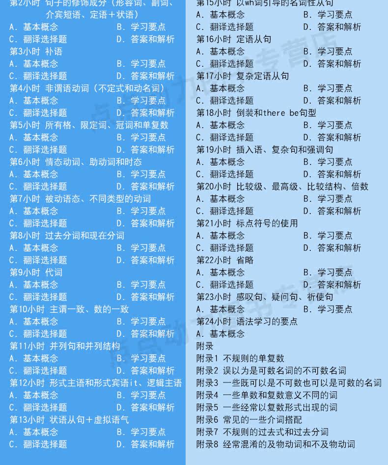 По каждой теме“”, обычно контролируется1~2Пейдж, просто поговорите о грамматических знаниях, которые должны быть освоены, и редкая грамматика не говорит об этом.