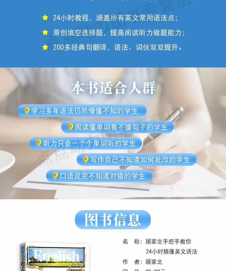 "" "" "Гу Джиабеи учит тебя24Я понимаю английскую грамматику》 Он в основном направлен на недостатки традиционного обучения грамматики.24Тема темы, время каждой темы предусмотрено1Часы, тогда, тогда24Вы можете узнать общую концепцию английского языка в грамматике.