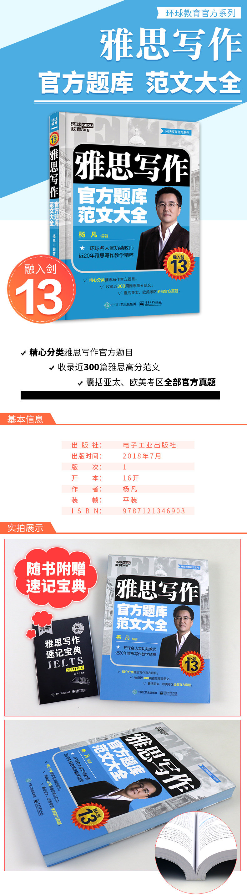 «Официальная коллекция образцов письменных вопросов IELTS/Официальная серия глобального образования», составленная Ян Фаном, включает более 270 образцов эссе с высокими оценками по письменным категориям IELTS A и G. Вопросы детально классифицированы, а переводы точны и понятны. Это банк вопросов для подготовки к экзаменам для студентов IELTS.Книга состоит из трех глав: Глава 2 представляет собой банк вопросов для аргументированных эссе, включающий десять категорий: образование и поиск работы, семейная жизнь, современные технологии, средства массовой информации, животные, окружающая среда, ресурсы и транспорт, традиции, развитие и изменения, правительство, равенство и социальные проблемы. Помимо предоставления точных переводов, автор также выставляет оценки и комментирует статьи, чтобы помочь кандидатам понять их уровень письма и прояснить направление для улучшения.Глава 2 включает 28 типов диаграмм для задания категории А 1, которые помогут кандидатам полностью освоить это задание.Третья глава в основном объясняет буквы G-типа.