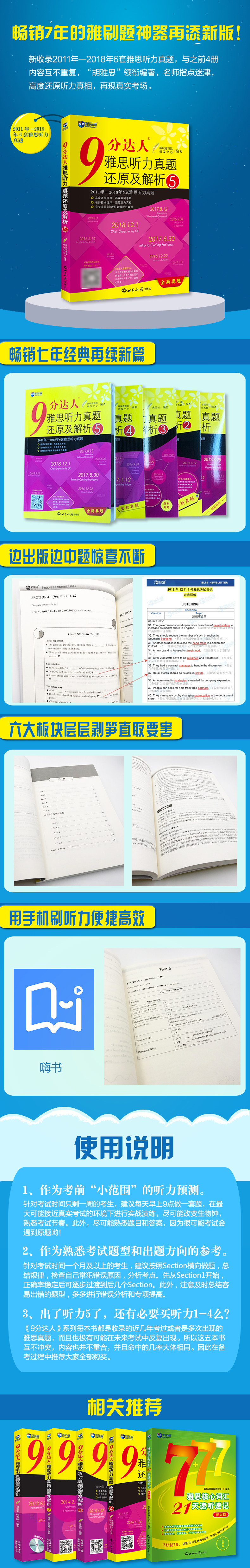 1. Недавно включен в 2011 год.— 2018 6 наборов IELTS прослушивания реальных вопросов.Эти 6 наборов вопросов являются реальными вопросами, которые были изучены недавно, которые могут полностью отразить текущую тенденцию теста на прослушивание IELTS.Можно сказать, что будущее будет ссылаться на тест IELTS в будущем&Ldquo; жареная утка&Rdquo; ради того, что содержание золота высокое.В качестве дополнительной информации об проверке перед экзаменом эта книга является первой.