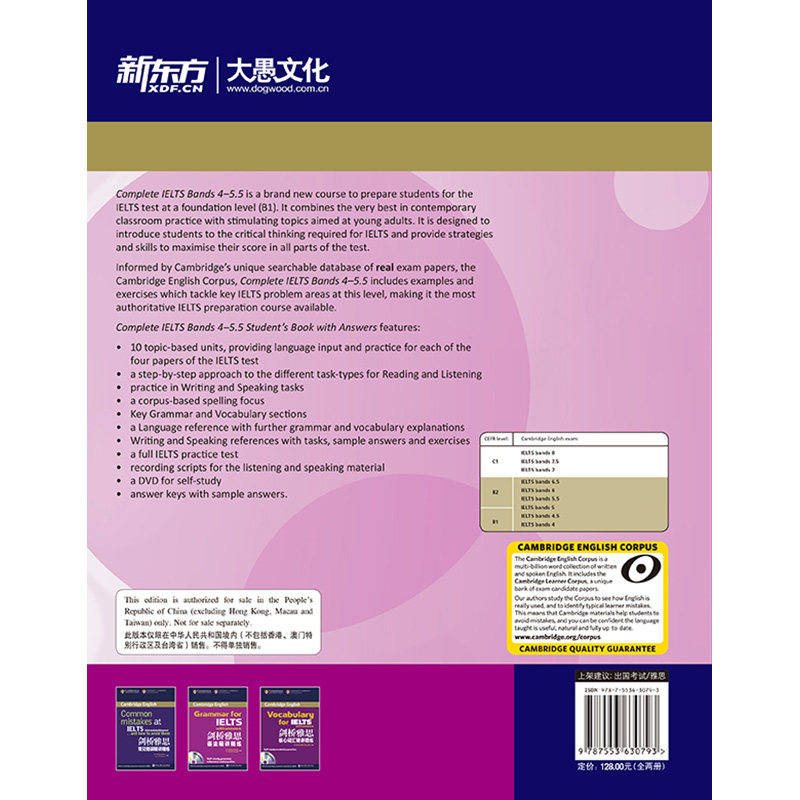 Кембриджский IELTS Основные учебные полосы 4-5,5 B1 (аффилированная книга и DVD CD) Завершите IE New Oriental
