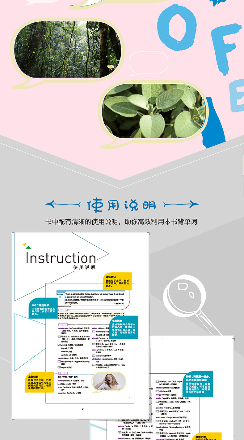 Ниже каждого предложения анализируется грамматическая структура предложения, чтобы помочь кандидатам понять трудности с грамматикой теста IELTS.Эта книга представляет собой четырехколорную печать с более чем 100 полными картинками, а слова памяти больше не скучные.Эта книга также оснащена звуковой чтением вслух, чистого английского, сканирования QR -кода задним ходом или входа на веб -сайт входа в систему, вы можете скачать его и прослушать.Кроме того, четыре учителя IELTS в New Oriental помогли использовать курсы поддержки книги. Онлайн и офлайн -обучение были идеально объединены. Сканируйте QR -код на заднем плане, чтобы купить уроки.