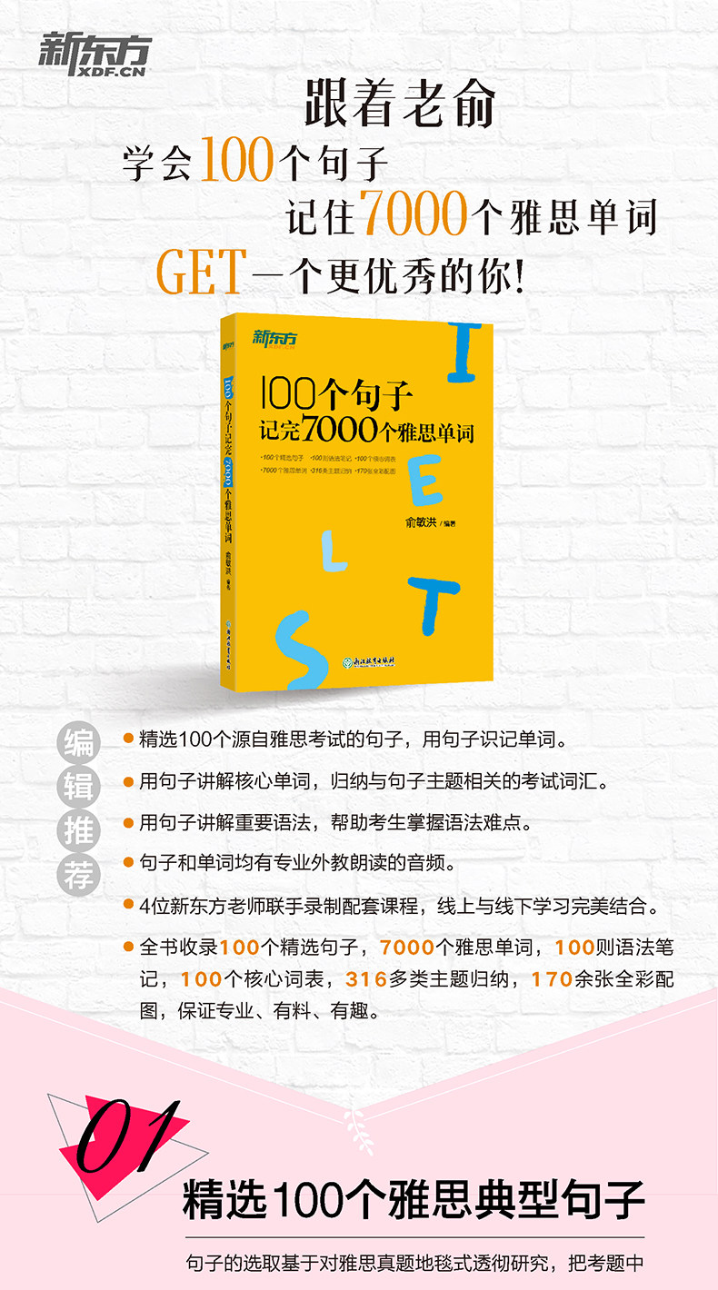 Когда я преподавал TOEFL более 20 лет назад, некоторые студенты задавали мне тот же вопрос:&Ldquo; учитель ю, мы чувствуем, что слов трудно носить, предложения не могут читать, и понимание чтения не может быть сделано. Есть ли хороший способ?&Затем, основанный на принципе обучения, упомянутом выше, я хочу активировать английский метод изучения английского языка и поделиться им со всеми.«100 предложений завершили 7000 слов TOEFL», которые были хорошо приняты читателями с момента публикации. Чтобы помочь кандидатам, которые готовится к тесту IELTS, я также специально написал это »100 предложений для большинства IELTS Кандидаты. Конец 7000 слов IELTS.