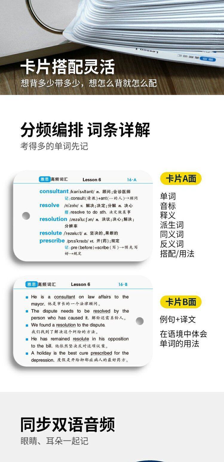 华研外语 IELTS Vorcalary Card 544 Портативная карта упаковочная упаковка Круг Круг частота частота частоты основные слова Cambridge Ielts Ieltts Информация об экзамене