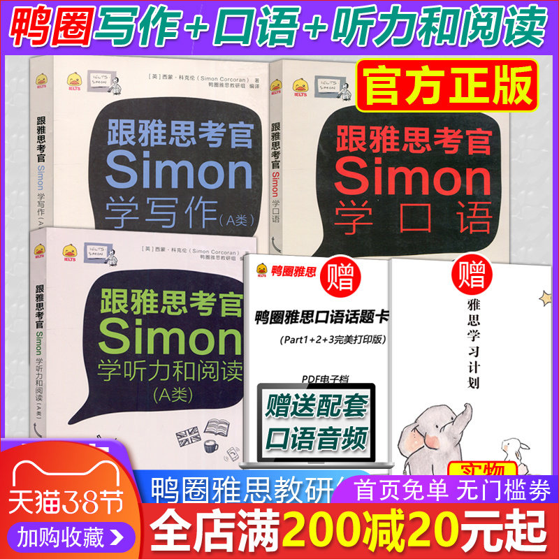 Spot -of -Hair Duck Ring и IELTS Simon Learning IELTS Письменность+Говоря+прослушивание, чтение всех 3 книг Прослушивание и чтение утка IELTS Преподавание и исследовательская группа Редактировать