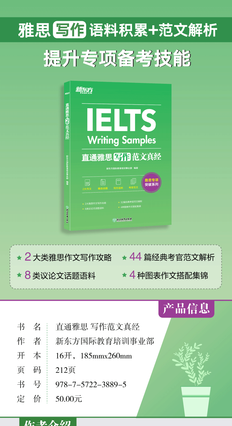 Эта книга была написана новыми преподавателями из восточного фронта, объединяя суть опыта преподавания многих учителей.Эта книга выбирает 8 типов обсуждения по теме письма IELTS и четырех типов диаграмм из реальных вопросов IELTS. -Корирование композиции.Книга также суммирует писания IELTS, которые помогают кандидатам знакомы с обычно используемым совпадением и укрепляют выражение языка.Эта книга также содержит 32 аргумента по эссе и 12 эссе, которые тщательно написаны экзаменатором IELTS в соответствии с официальными стандартами оценки. имитация написать.