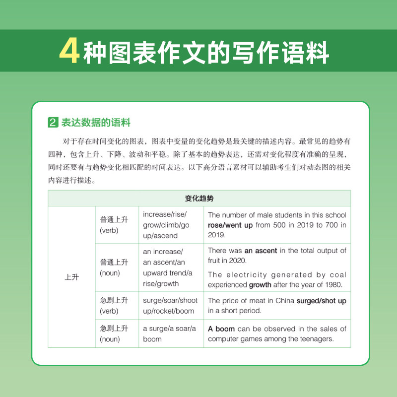 Предоставьте 4 типа композиции диаграммы, подробные практические модели предложений и уточнить методы выражения данных, чтобы помочь кандидатам овладеть навыками написания композиции типа диаграммы.