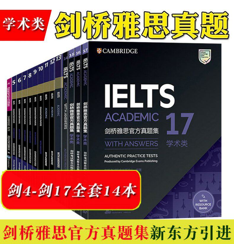 Новый стиль [необязательная одна книга] Кембридж IELTS Официальный сборник реальных вопросов 4-17 Cambridge IELTS Test Полный реальный анализ испытаний 4+5.6.7.8.9.10.12.13.14.15.17.17.18 Академическая земельная авиакомпания