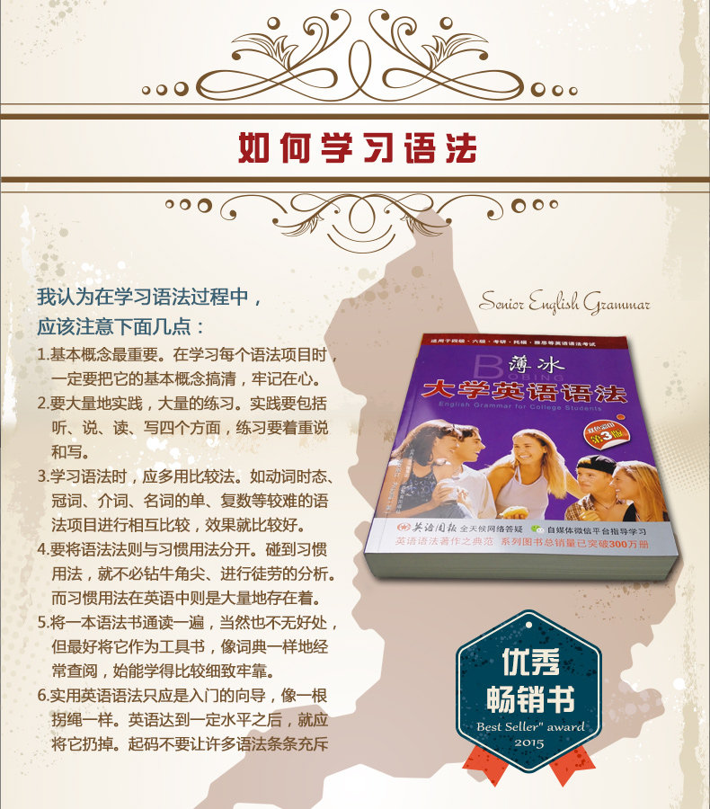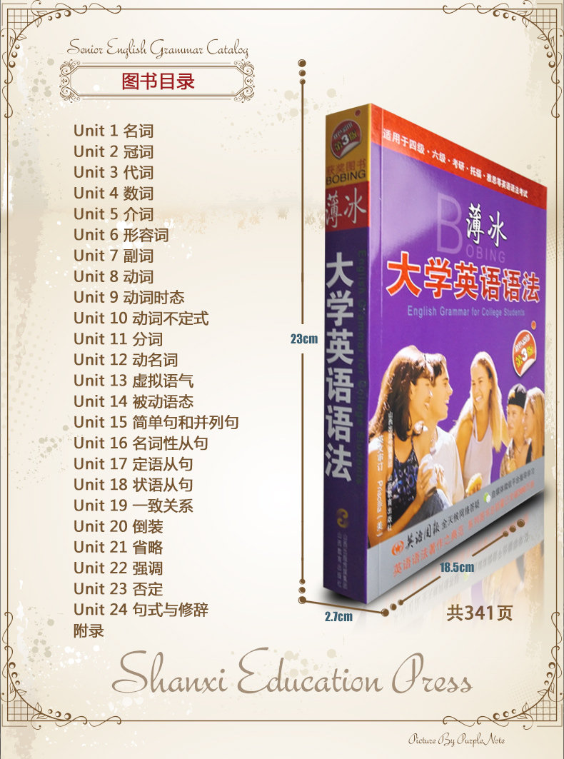Можно использовать как младшую среднюю школу, так и студенты колледжа, а содержание грамматики является относительно полным.Существуют разные вопросы анализа для читателей на разных этапах.