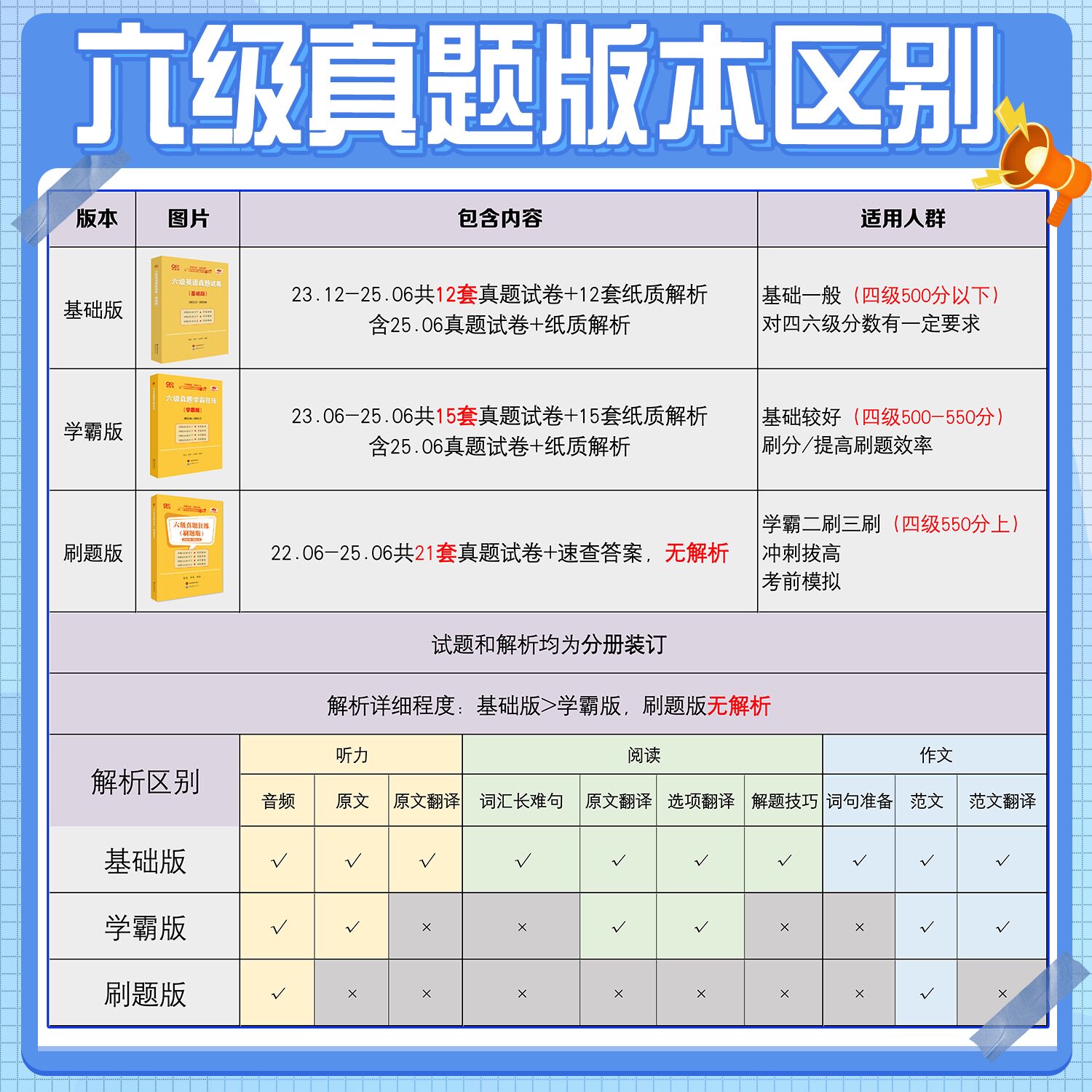 Spot, подготовка к экзамену в декабре 2025 года, Чжан Цзянь, Мастер Желтой книги, Практикуйте реальные вопросы английского CET-6, анализ 12 наборов реальных вопросов + листы ответов, CET6 предыдущие годы реальные вопросы Ответы Ответы